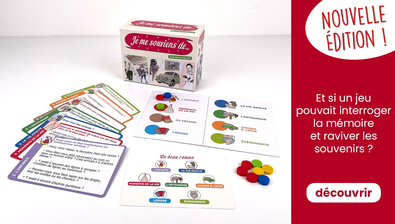 Des jeux pour organiser vos activités et ateliers avec les personnes âgées, pour stimuler les fonctions cognitives, travailler la mémoire, maintenir les compétences et favoriser les moments de plaisir et d’échanges. Une large gamme d’outils de stimulation et d’animation adaptés aux personnes âgées est à votre disposition pour organiser une animation en maison de retraite, faire des ateliers mémoire ou disposer de matériel pour une intervention en face à face : jeux de mémoire, quizz, exercices cognitifs, jeux sensoriels, puzzles, loisirs créatifs, jeux de société, matériel de gym douce et outils pour l'activité physique adaptée APA, jeux de motricité fine manipulation, parcours équilibre et psychomoteur, jeux pour atelier mémoire et langage, jeux de logique, jeux pour personnes malvoyantes, jeux de lancer et d’adresse, matériel sensoriel, jeux géant traditionnels en bois, jeux de loto, matériel de gymnastique douce… Agoralude crée et propose des outils pour les professionnels travaillant auprès de personnes âgées : animatrice, animateur, ergothérapeute, psychologue, AMP, psychomotricienne, psychomotricien, orthophoniste, AS, bénévole, aidants… Nos jeux sont utilisés avec des seniors et personnes âgées en pleine forme, ainsi qu’avec des personnes en difficulté (handicap visuel ou problèmes de motricité, de préhension, troubles cognitifs, psychiques ou maladies neuro-dégénératives - maladie d’Alzheimer, de Parkinson…- ). Nos jeux sont utiles pour accompagner une approche de thérapie non médicamenteuse dans les structures d’accueil de personnes âgées (maison de retraite, EHPAD, Résidence Services Sénior, Résidence Autonomie, Accueil de jour, PASA, Halte répit…) ou intervenant auprès de personnes âgées (équipe mobile ou spécialisée Alzheimer –EMA ou ESA-, SSIAD, France Alzheimer, VMEH, Blouses Roses...).