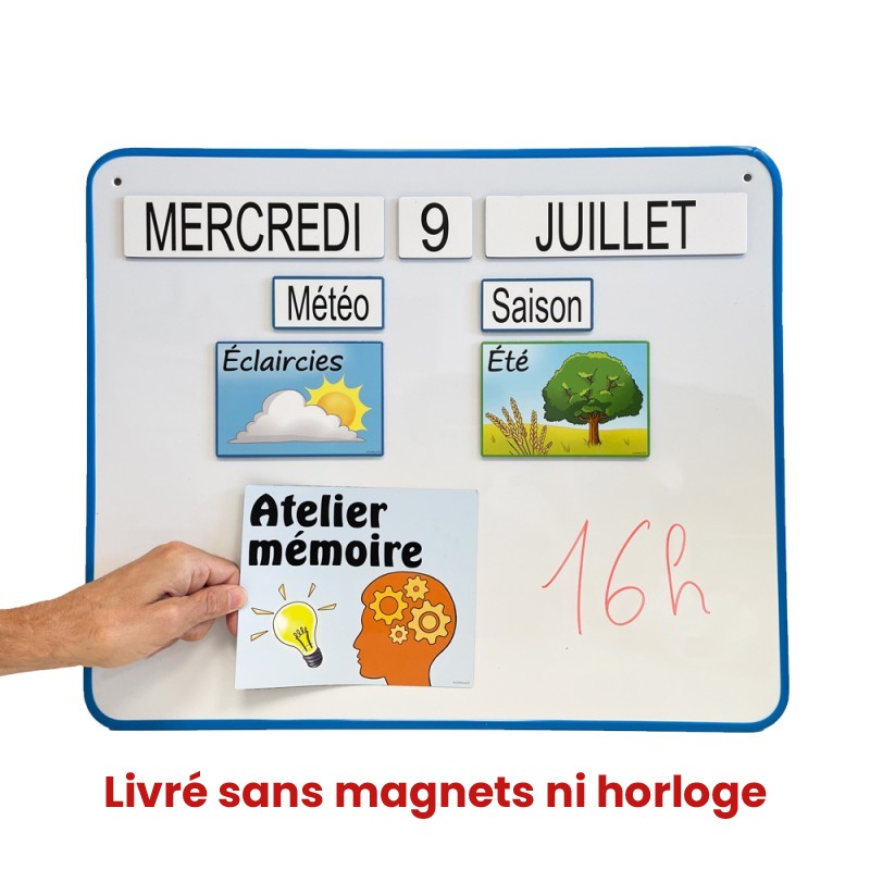 La désorientation spatio-temporelle peut toucher de nombreuses personnes âgées, souffrant de troubles cognitifs ou non. L’affichage d’un tableau-éphéméride ou d’un calendrier dans le hall d’un EHPAD, ou en salle d’animation permet aux résidents de se repérer dans le temps. L’éphéméride fournit des repères qui aident à se situer dans le temps et d’inscrire sa vie dans un cadre structuré de temps courts (jour, semaine) et de temps longs (mois, saison, année). Les éphémérides magnétiques permettent aussi de rythmer une journée, d’annoncer les événements et de programmer des animations. Les calendriers en bois et éphémérides permettent aux seniors de garder une autonomie et d’aider les personnes âgées atteintes de troubles cognitifs (trouble de la mémoire, maladie d’Alzheimer…) à conserver des repères temporels.