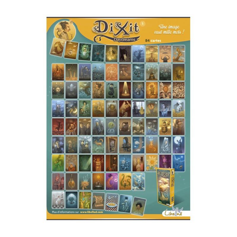 + L'extension Dixit Daydreams comprenant 84 cartes suplémentaire magnifiquement illustrées.