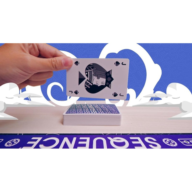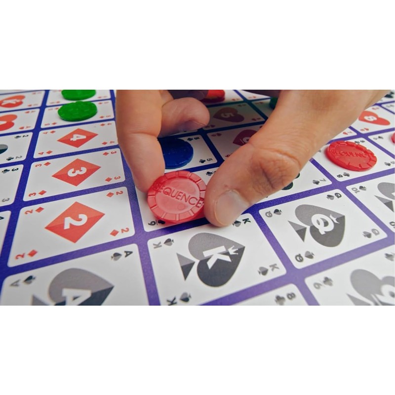 Dans Séquence, chaque joueur pioche des cartes et, à son tour, place un jeton sur le plateau sur la case correspondant à la carte jouée. Chaque carte apparaît deux fois sur le plateau, ce qui permet de choisir stratégiquement où poser son jeton pour bloquer ou avancer ses propres lignes. On doit à la fois constituer une ligne de cinq jetons (séquence) et contrer les avancées des adversaires, ce qui rend chaque partie dynamique et interactive.