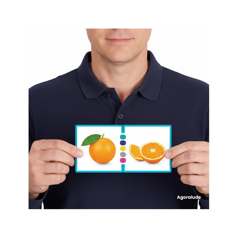 Les 34 paires de cartes permettent de travailler le vocabulaire, notamment le sens des adjectifs (haut/bas, propre/sale, grand/petit...). Ce jeu stimule l'observation et la logique, ainsi que la motricité fine par la manipulation des cartes.