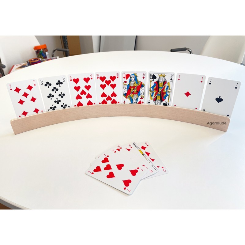 Un grand présentoir à cartes en bois de 50 cm, pour continuer à jouer aux cartes malgré des problèmes de manipulation et de préhension des personnes âgées.