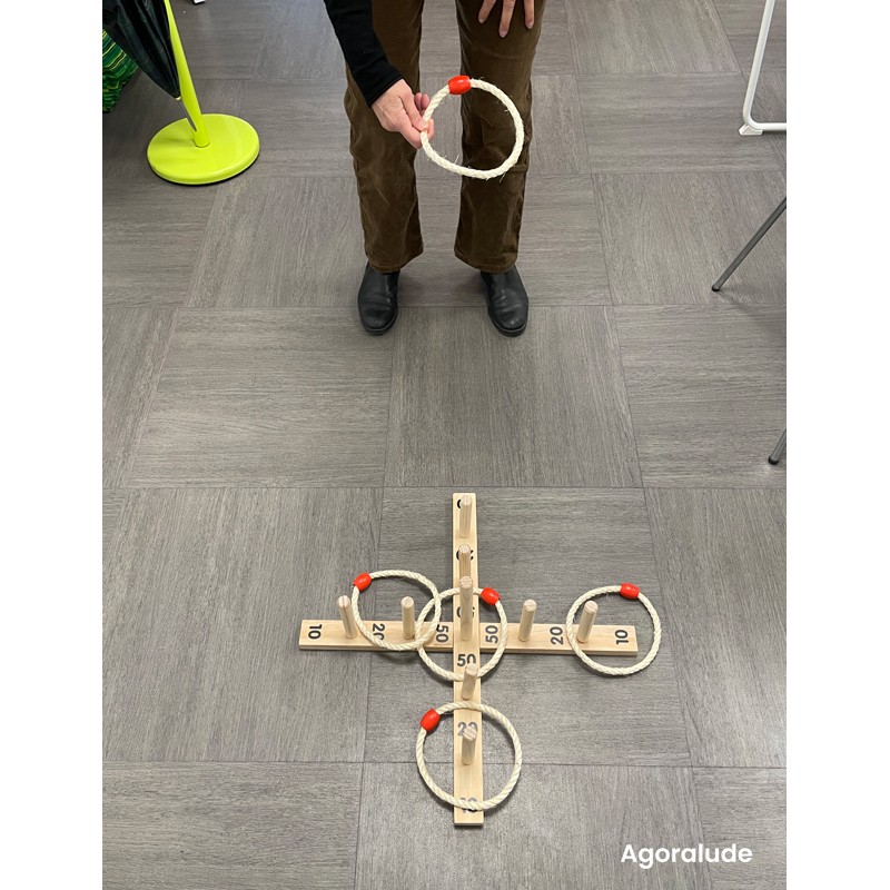 Avec son format stable et ses anneaux légers, le jeu peut être installé en salle d’animation ou à l'extérieur d'une résidence quand le soleil brille. Il s’intègre parfaitement dans des séances de coordination motrice, des ateliers de gym douce ou simplement comme jeu de groupe amusant en maison de retraite ou Ehpad.